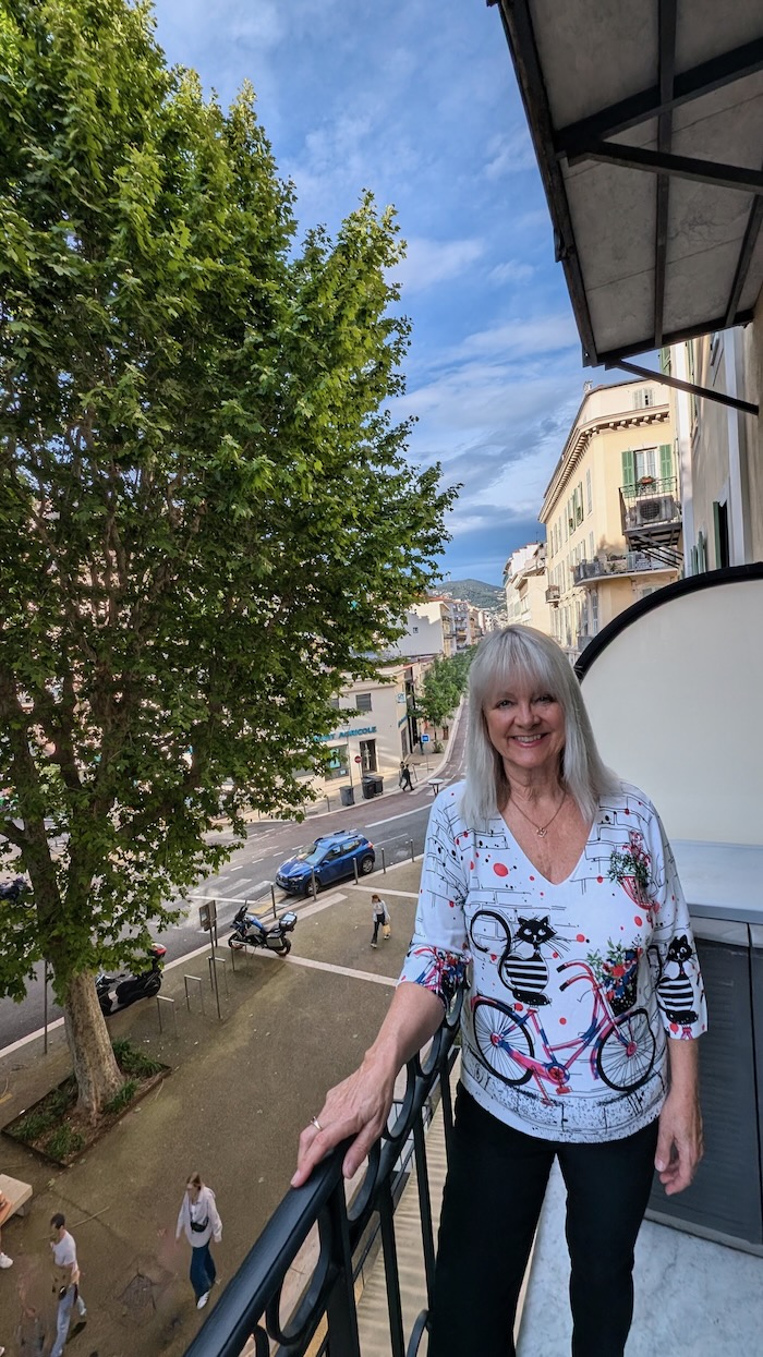 Denying my desire for ‘show pony’ outfits which I kept to the minimum. (The v-neck ‘cat’ tee below was purchased in L’Isle sur la Sorgue, and I took with me a beautiful linen blouse in emerald green that could be worn with my navy linen pants and black jeans.)